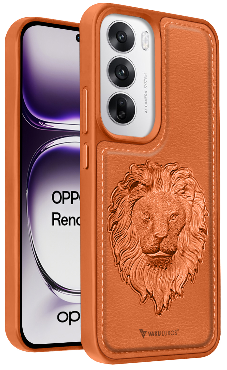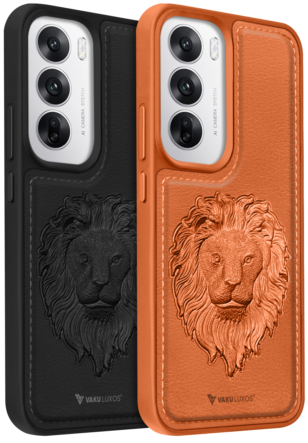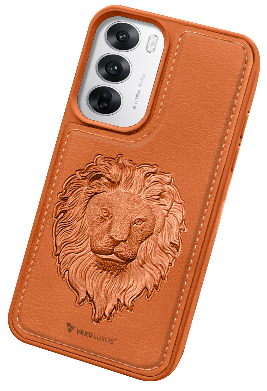 Vaku ® Oppo Reno12 Pro Lion Embossed Luxury Designer Leather Protective Back CoverVaku ® Oppo Reno12 Pro Lion Embossed Luxury Designer Leather Protective Back Cover
