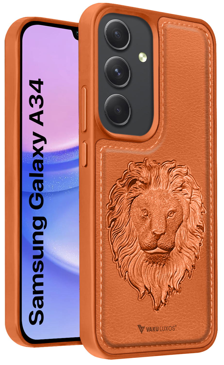 Vaku ® Samsung Galaxy A34 5G Lion Embossed Luxury Designer Leather Protective Back CoverVaku ® Samsung Galaxy A34 5G Lion Embossed Luxury Designer Leather Protective Back Cover
