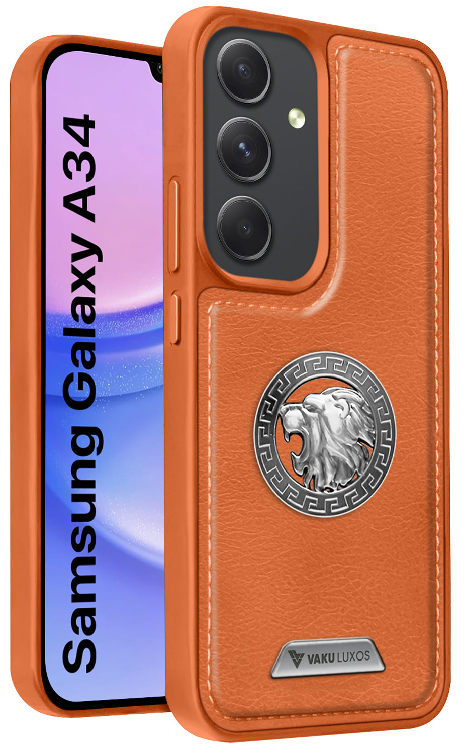 Vaku ® Samsung Galaxy A34 5G Regal Shield Metal Lion Engraved Leather Protective Back CoverVaku ® Samsung Galaxy A34 5G Regal Shield Metal Lion Engraved Leather Protective Back CoverVaku ® Samsung Galaxy A34 5G Regal Shield Metal Lion Engraved Leather Protective Back Cover