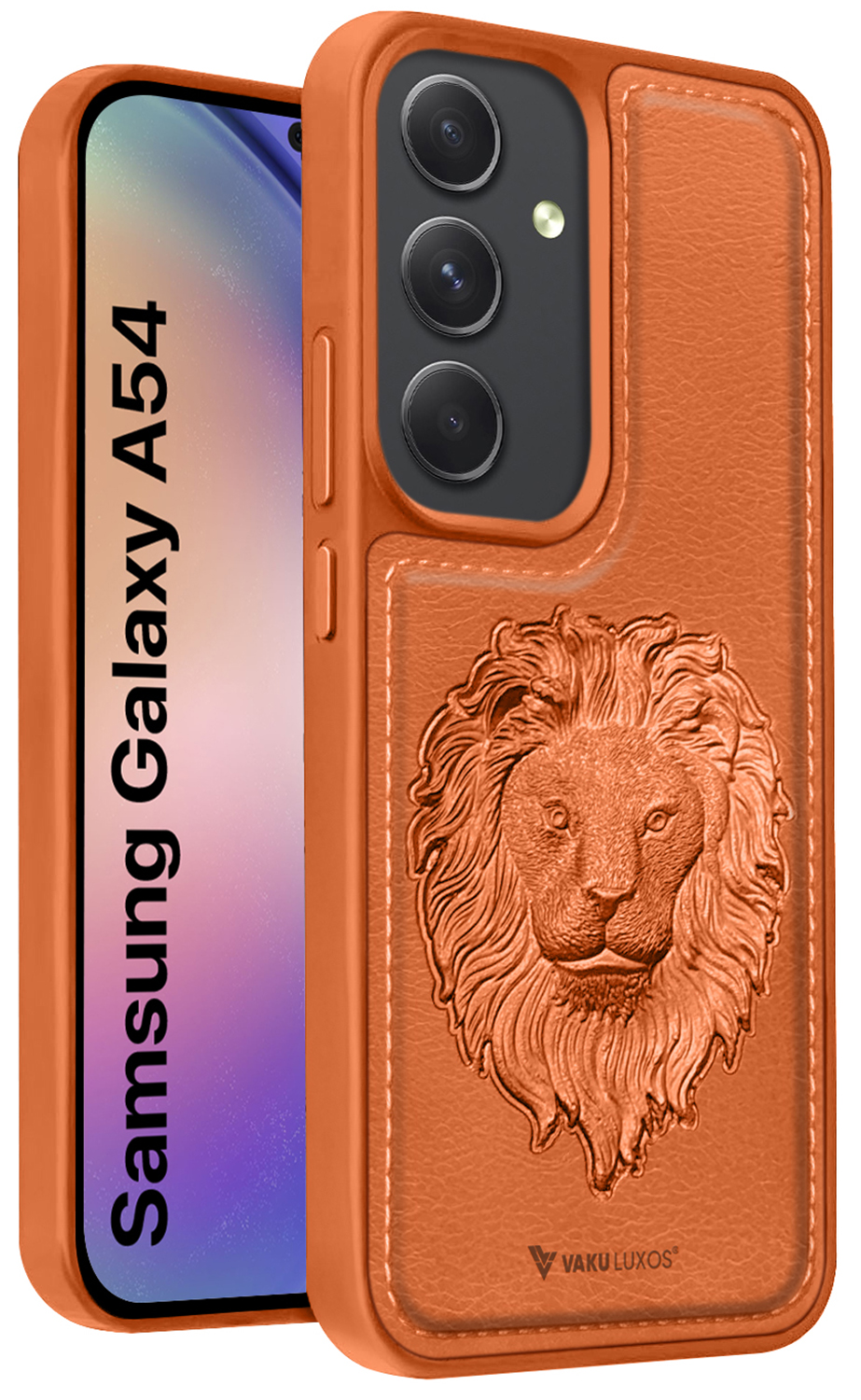 Vaku ® Samsung Galaxy A54 5G Lion Embossed Luxury Designer Leather Protective Back CoverVaku ® Samsung Galaxy A54 5G Lion Embossed Luxury Designer Leather Protective Back Cover