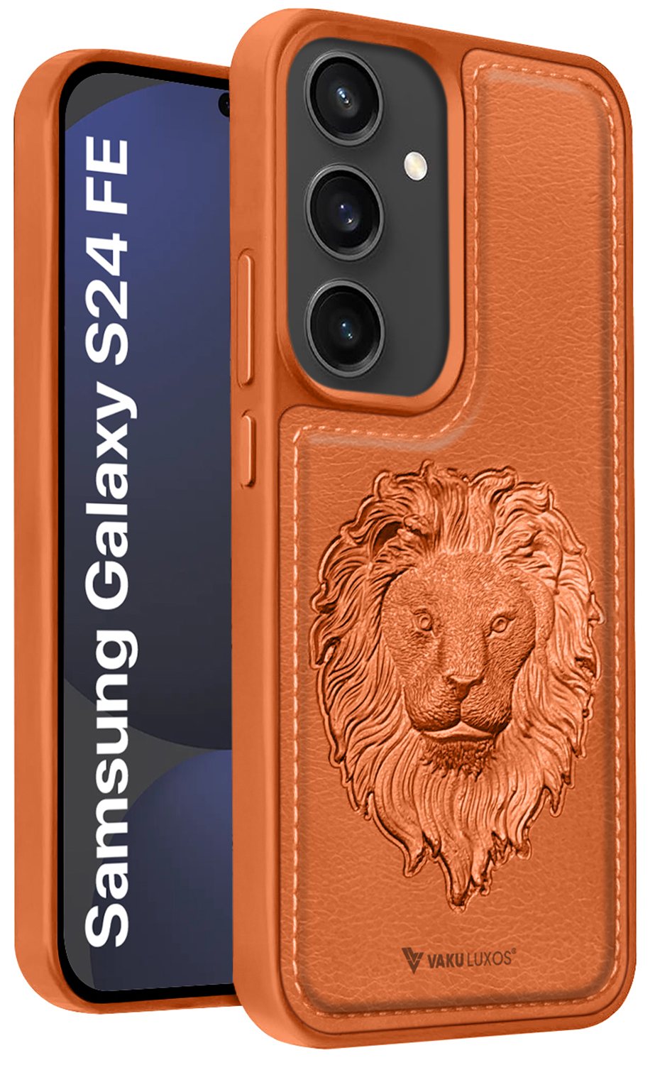 Vaku ® Samsung Galaxy S24 FE Lion Embossed Luxury Designer Leather Protective Back CoverVaku ® Samsung Galaxy S24 FE Lion Embossed Luxury Designer Leather Protective Back Cover