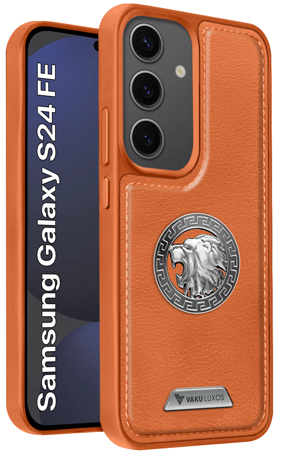 Vaku ® Samsung Galaxy S24 FE Regal Shield Metal Lion Engraved Leather Protective Back CoverVaku ® Samsung Galaxy S24 FE Regal Shield Metal Lion Engraved Leather Protective Back CoverVaku ® Samsung Galaxy S24 FE Regal Shield Metal Lion Engraved Leather Protective Back Cover