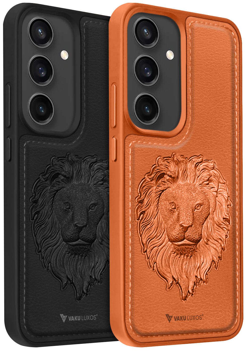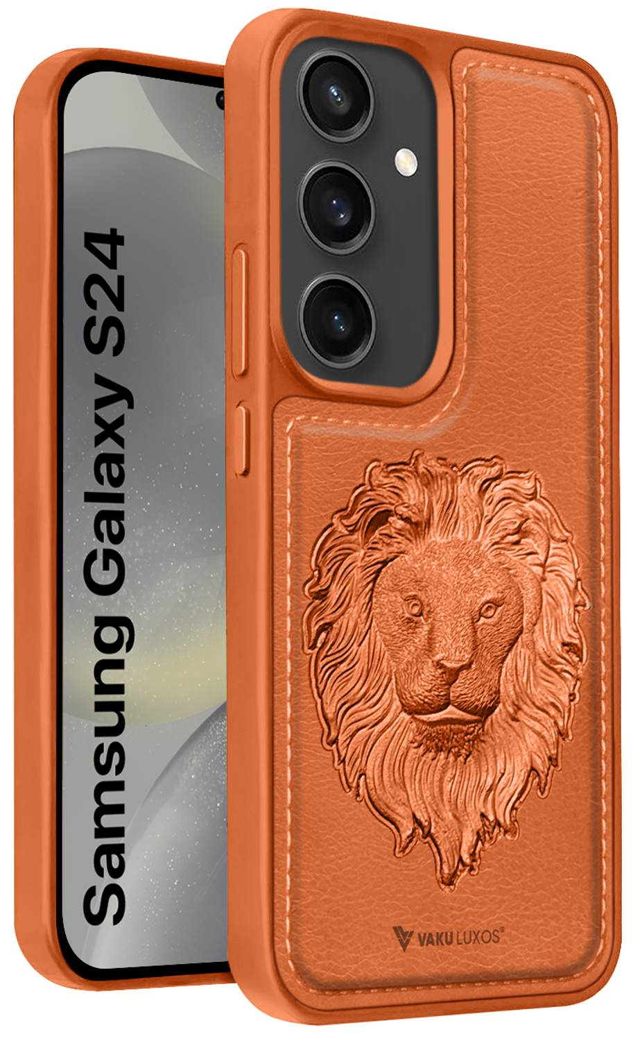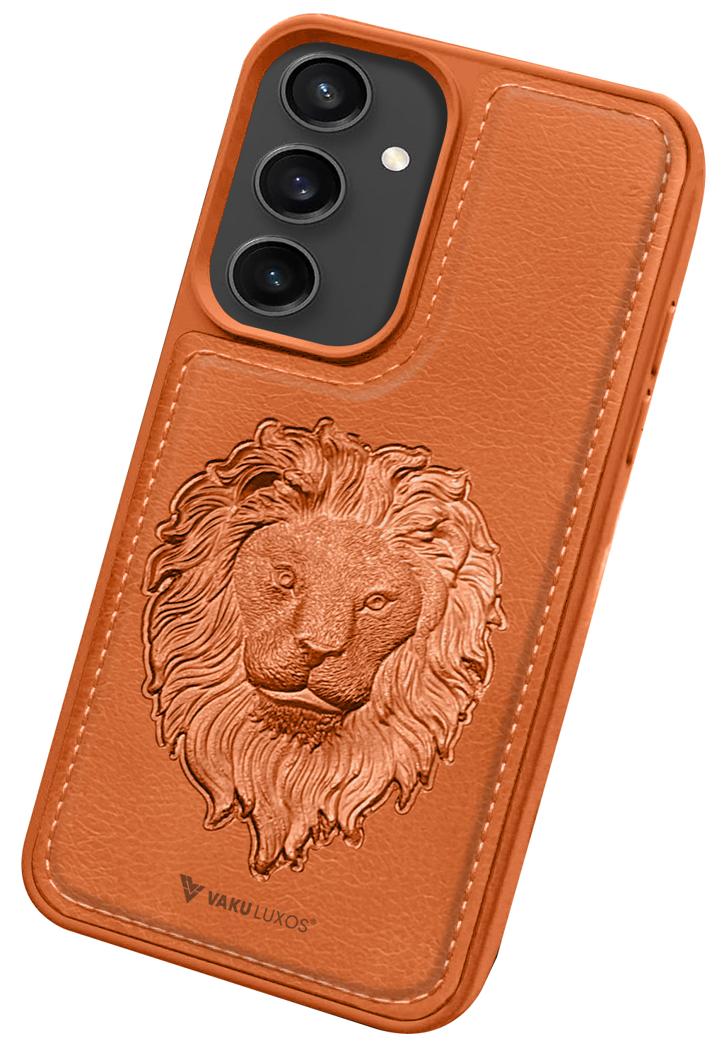 Vaku ® Samsung Galaxy S24 Lion Embossed Luxury Designer Leather Protective Back CoverVaku ® Samsung Galaxy S24 Lion Embossed Luxury Designer Leather Protective Back Cover
