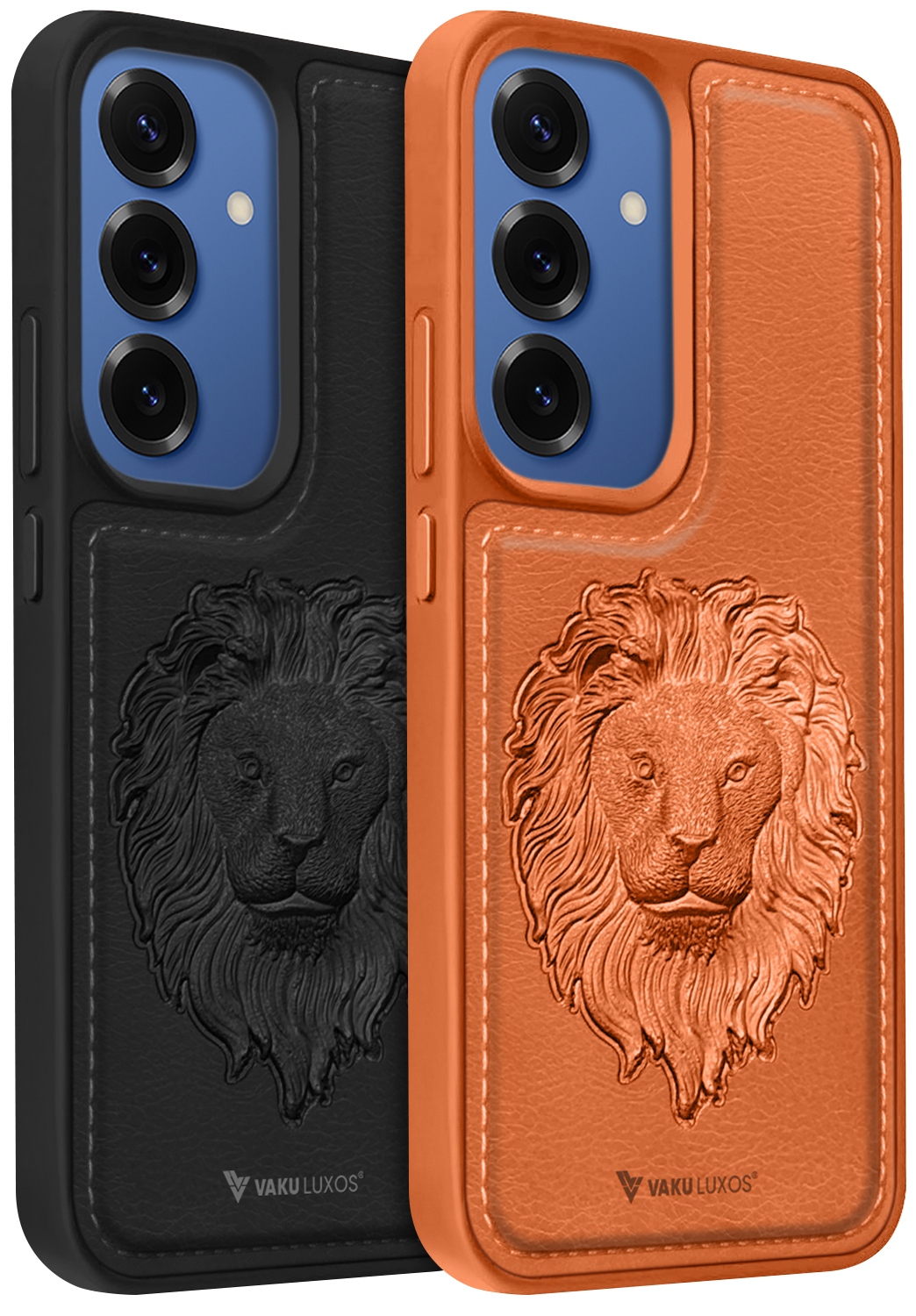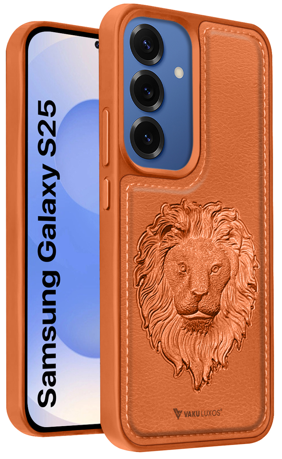 Vaku ® Samsung Galaxy S25 Lion Embossed Luxury Designer Leather Protective Back CoverVaku ® Samsung Galaxy S25 Lion Embossed Luxury Designer Leather Protective Back Cover