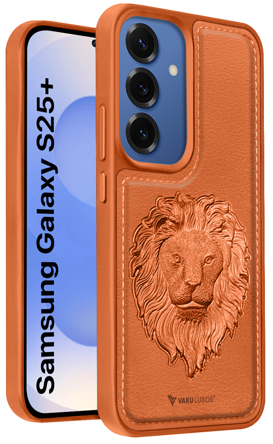 Vaku ® Samsung Galaxy S25 Plus Lion Embossed Luxury Designer Leather Protective Back CoverVaku ® Samsung Galaxy S25 Plus Lion Embossed Luxury Designer Leather Protective Back Cover