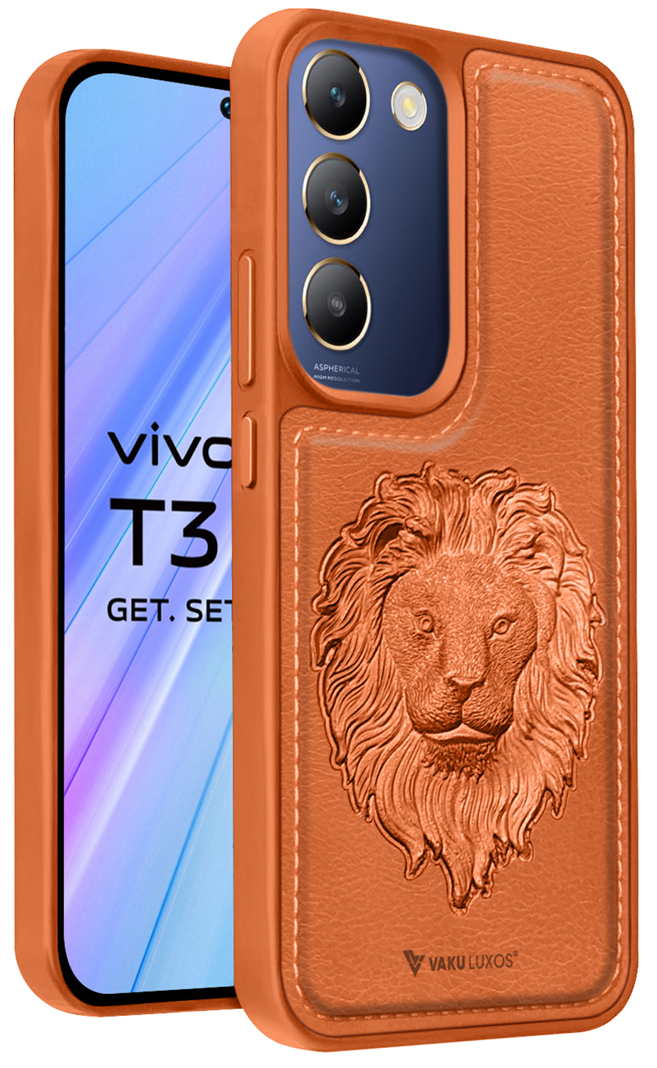 Vaku ® Vivo T3 5G Lion Embossed Luxury Designer Leather Protective Back CoverVaku ® Vivo T3 5G Lion Embossed Luxury Designer Leather Protective Back Cover
