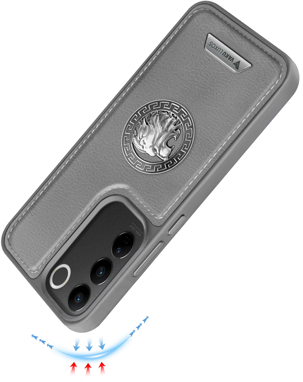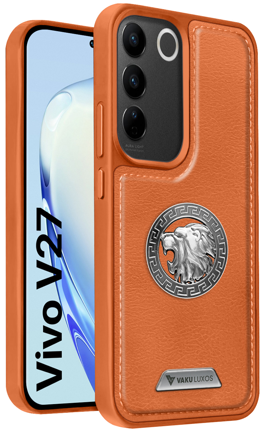 Vaku ® Vivo V27 5G Regal Shield Metal Lion Engraved Leather Protective Back CoverVaku ® Vivo V27 5G Regal Shield Metal Lion Engraved Leather Protective Back CoverVaku ® Vivo V27 5G Regal Shield Metal Lion Engraved Leather Protective Back Cover