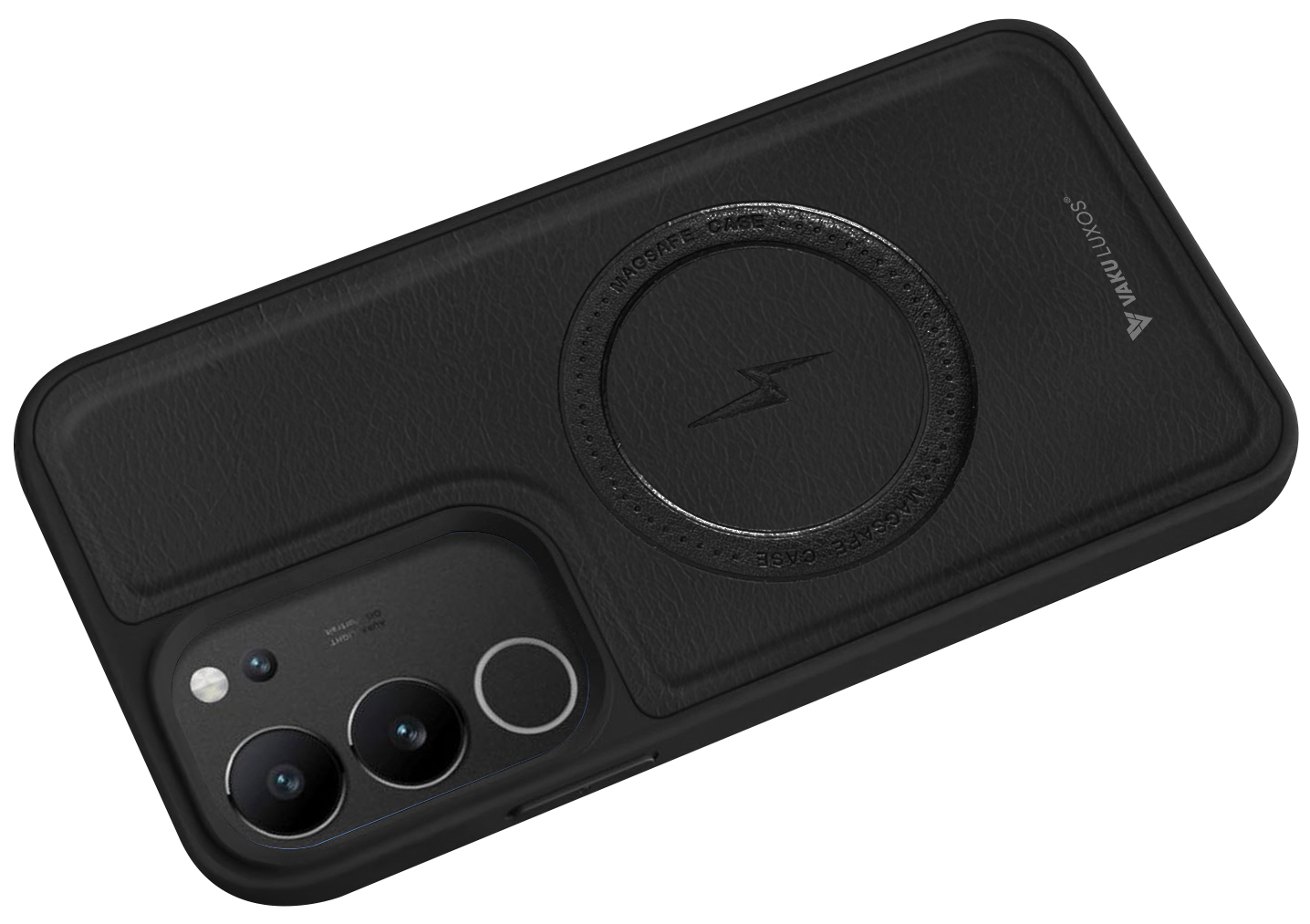 Vaku ® Vivo V29 5G Maxtron Leather Stitched Magnetic Magsafe Non-Slip Grip Shockproof Back Cover
