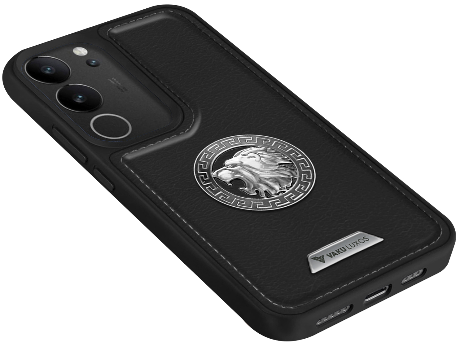 • Elevate your Vivo V29 5G to royalty! Introducing the Vaku Regal Shield: A majestic fusion of premium leather-inspired elegance and a striking Metal Lion Engraving. This isn't just a cover; it's a statement.