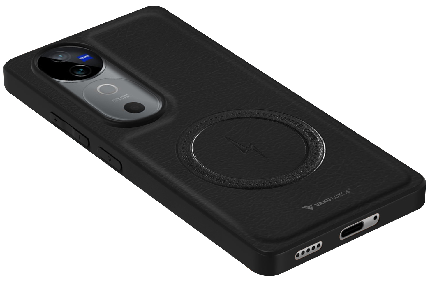 This Leather MagSafe back cover offers a luxurious touch while ensuring long-lasting durability.
