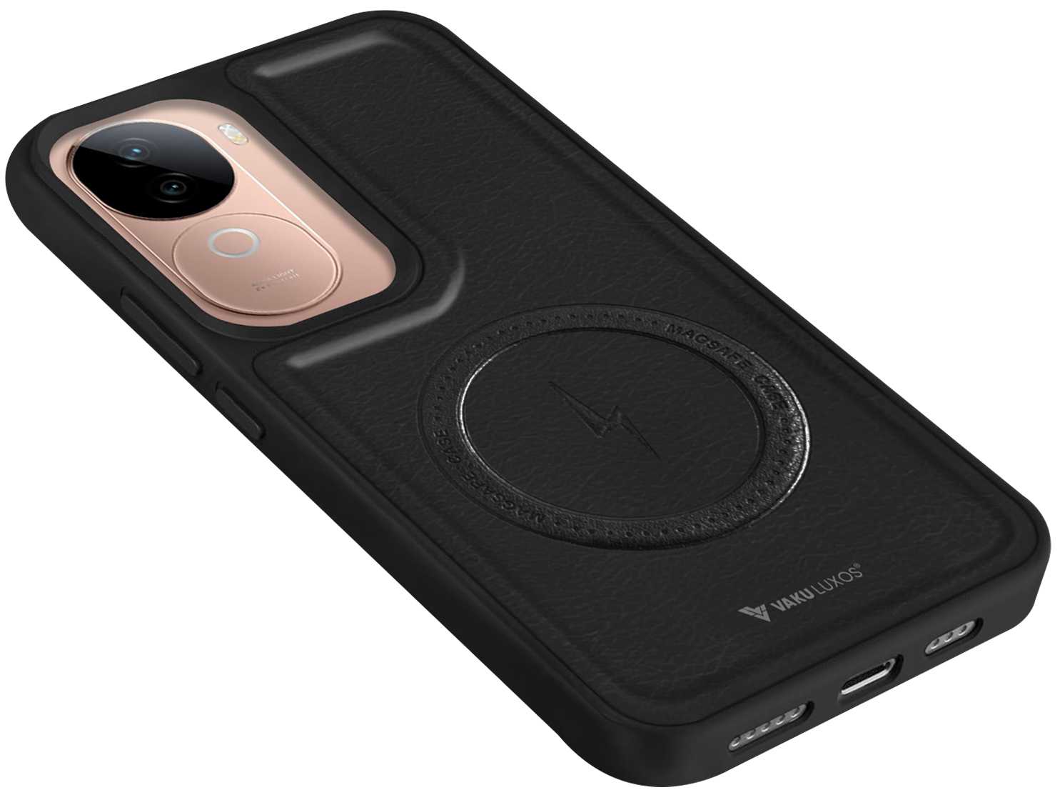This Leather MagSafe back cover offers a luxurious touch while ensuring long-lasting durability.