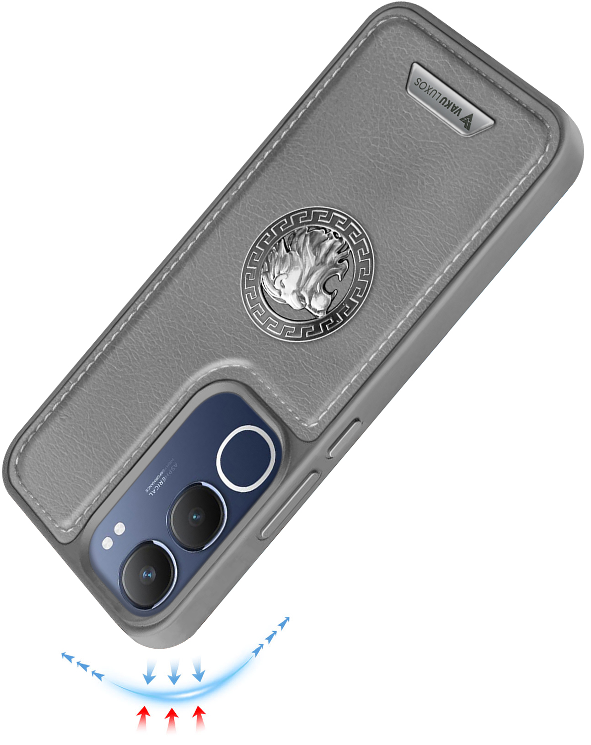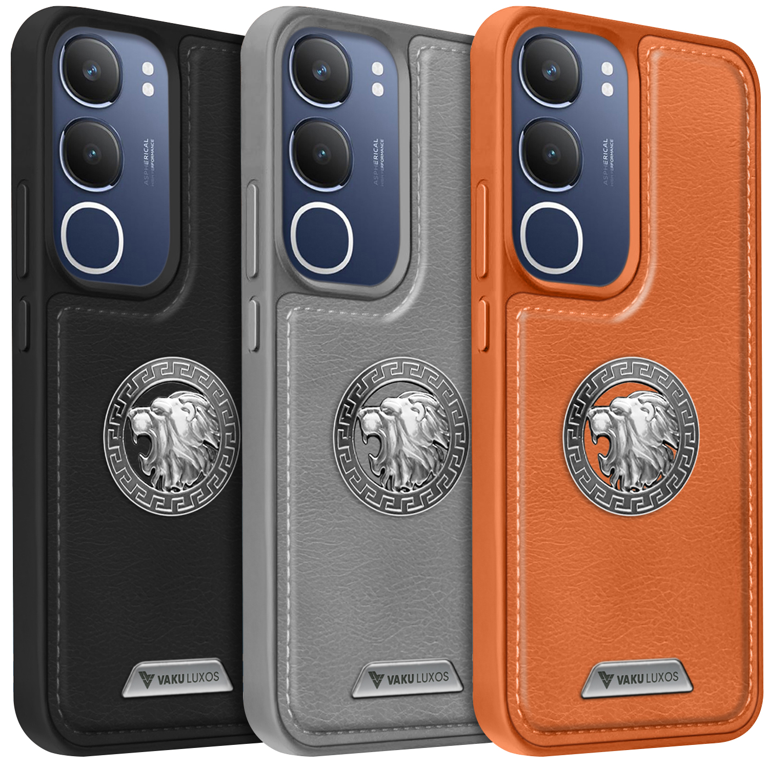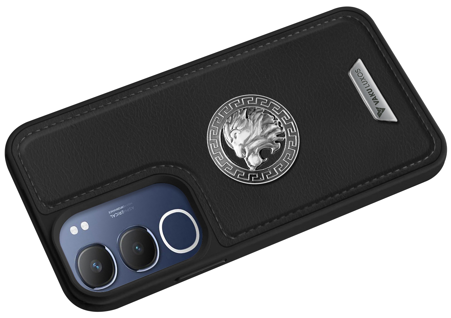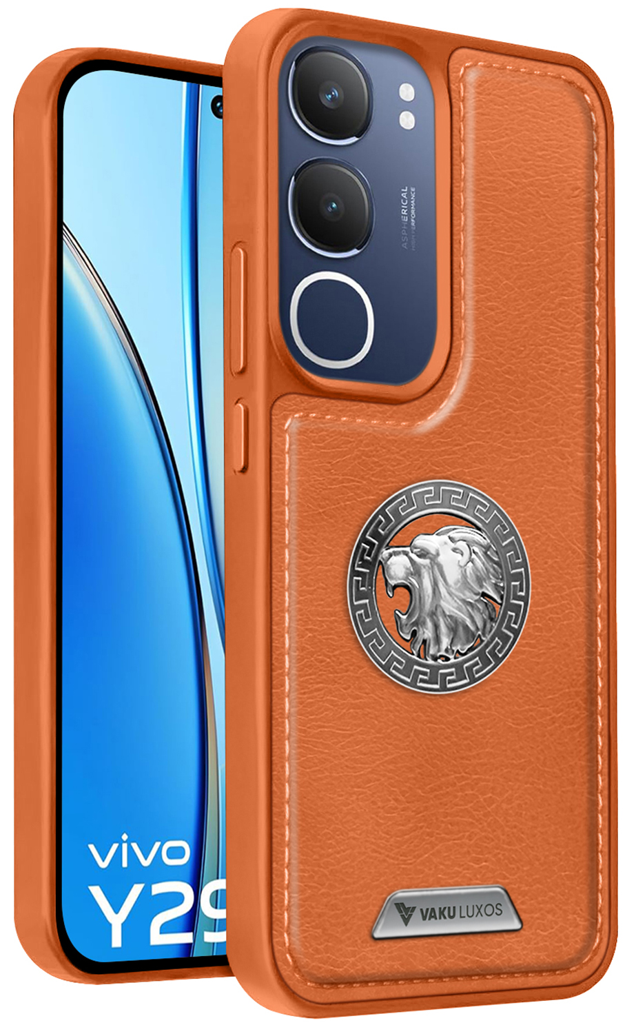 Vaku ® Vivo Y29 5G Regal Shield Metal Lion Engraved Leather Protective Back CoverVaku ® Vivo Y29 5G Regal Shield Metal Lion Engraved Leather Protective Back CoverVaku ® Vivo Y29 5G Regal Shield Metal Lion Engraved Leather Protective Back Cover