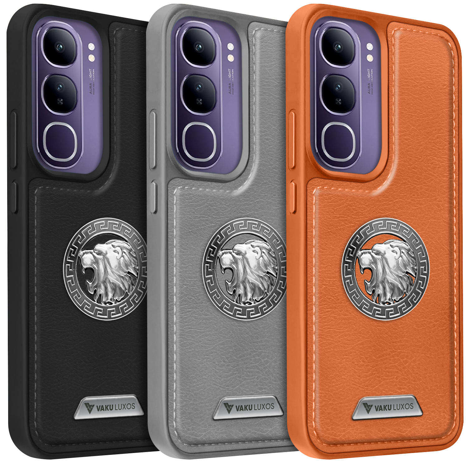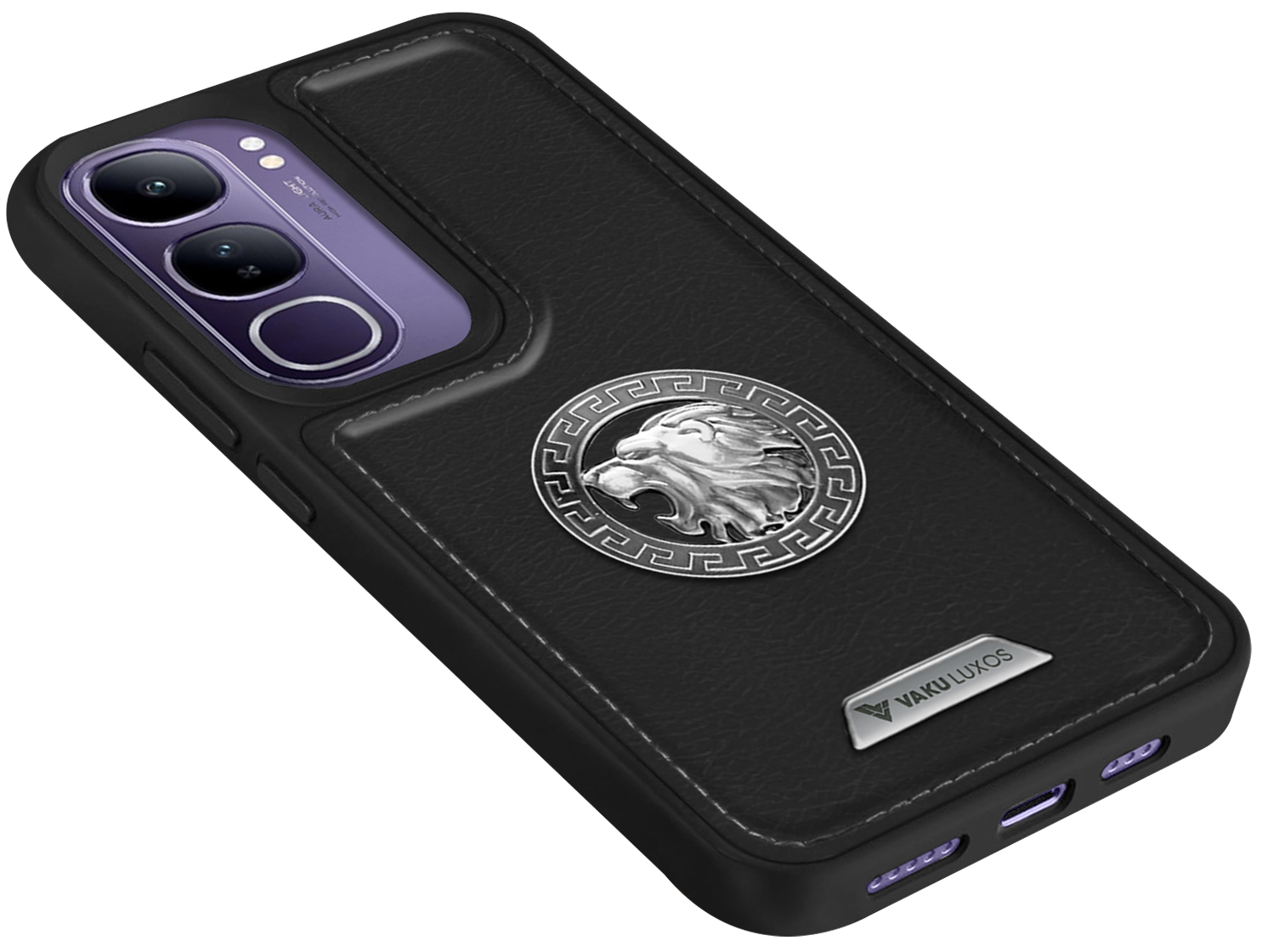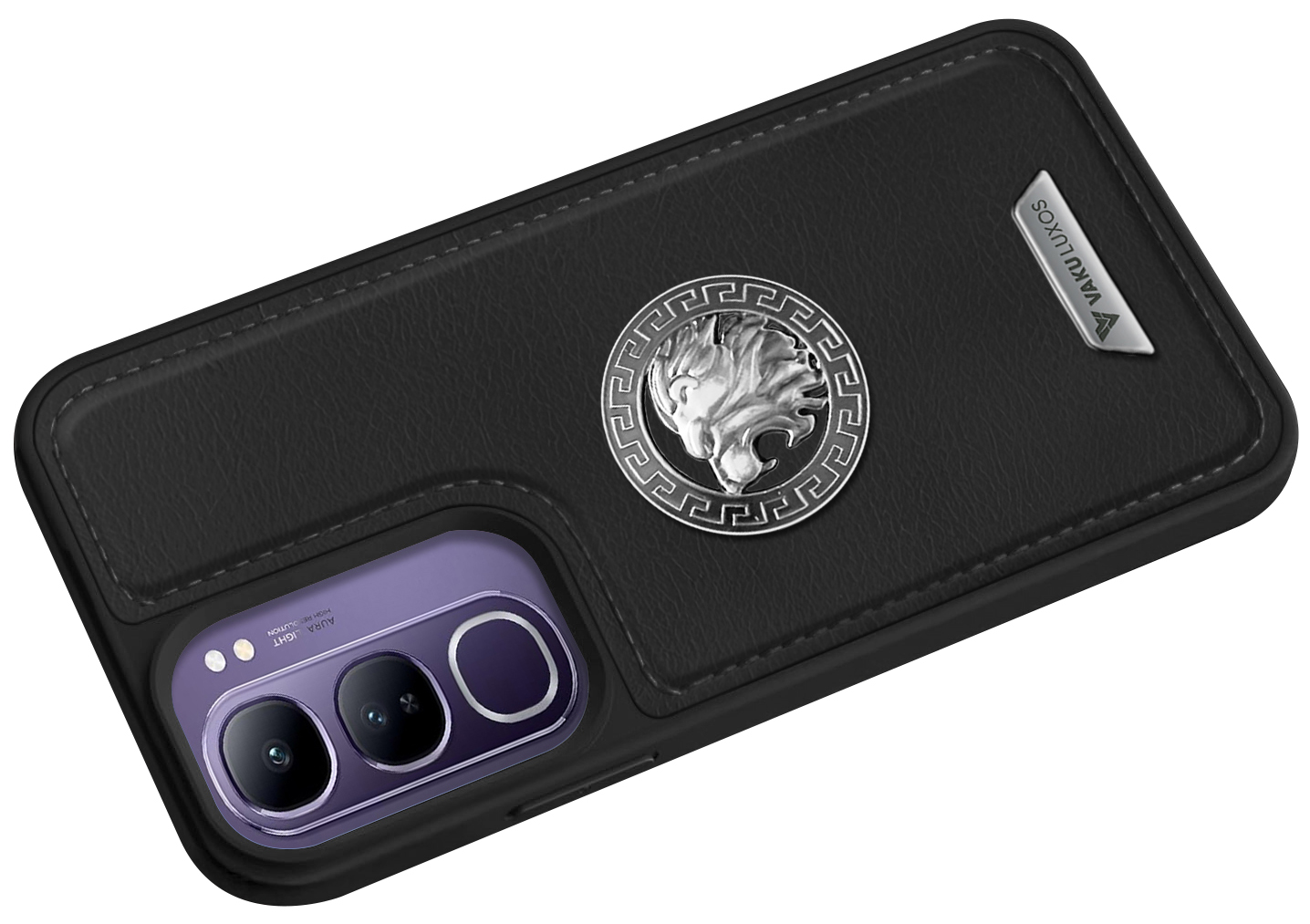 Vaku ® Vivo Y300 5G Regal Shield Metal Lion Engraved Leather Protective Back CoverVaku ® Vivo Y300 5G Regal Shield Metal Lion Engraved Leather Protective Back CoverVaku ® Vivo Y300 5G Regal Shield Metal Lion Engraved Leather Protective Back Cover