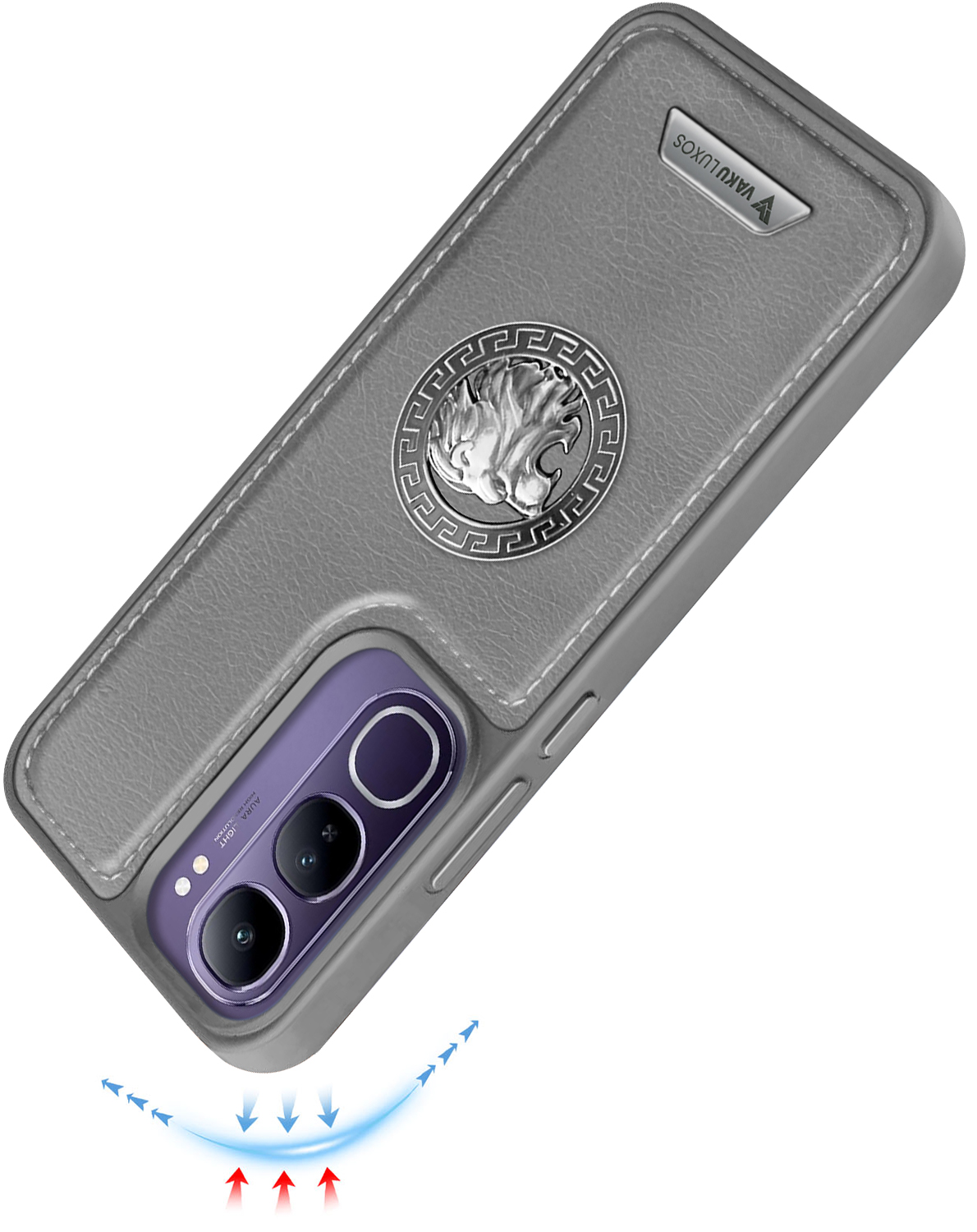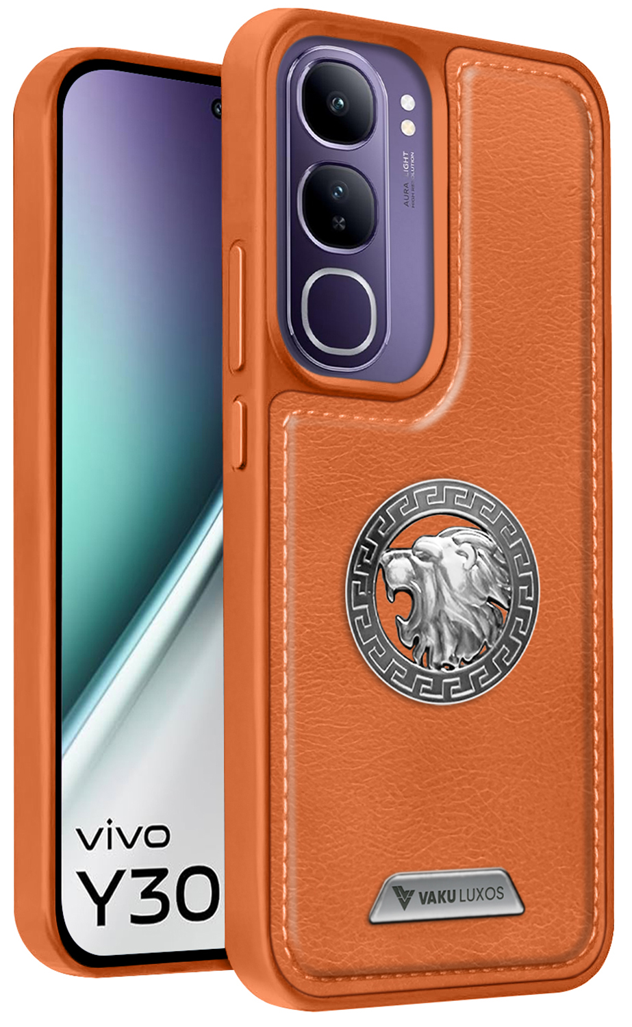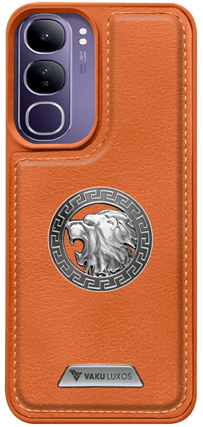 Vaku ® Vivo Y300 5G Regal Shield Metal Lion Engraved Leather Protective Back CoverVaku ® Vivo Y300 5G Regal Shield Metal Lion Engraved Leather Protective Back CoverVaku ® Vivo Y300 5G Regal Shield Metal Lion Engraved Leather Protective Back Cover