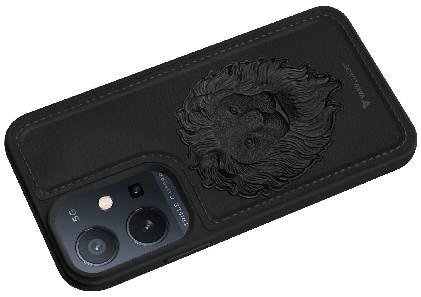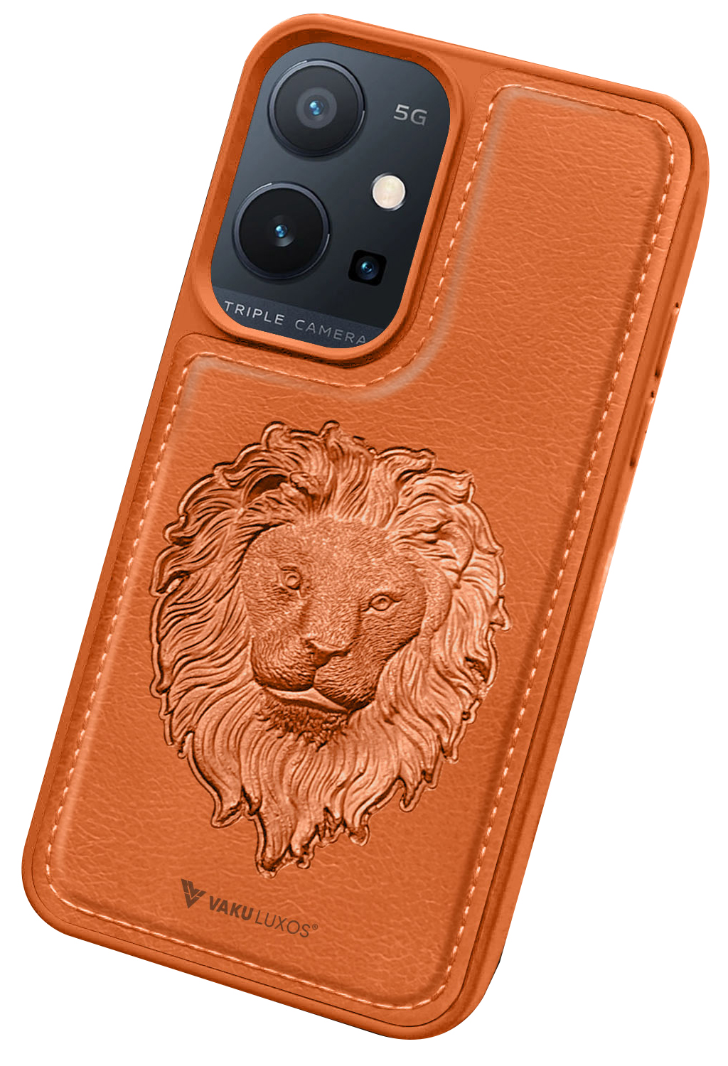 Vaku ® Vivo Y75 5G Lion Embossed Luxury Designer Leather Protective Back Cover CaseVaku ® Vivo Y75 5G Lion Embossed Luxury Designer Leather Protective Back Cover Case