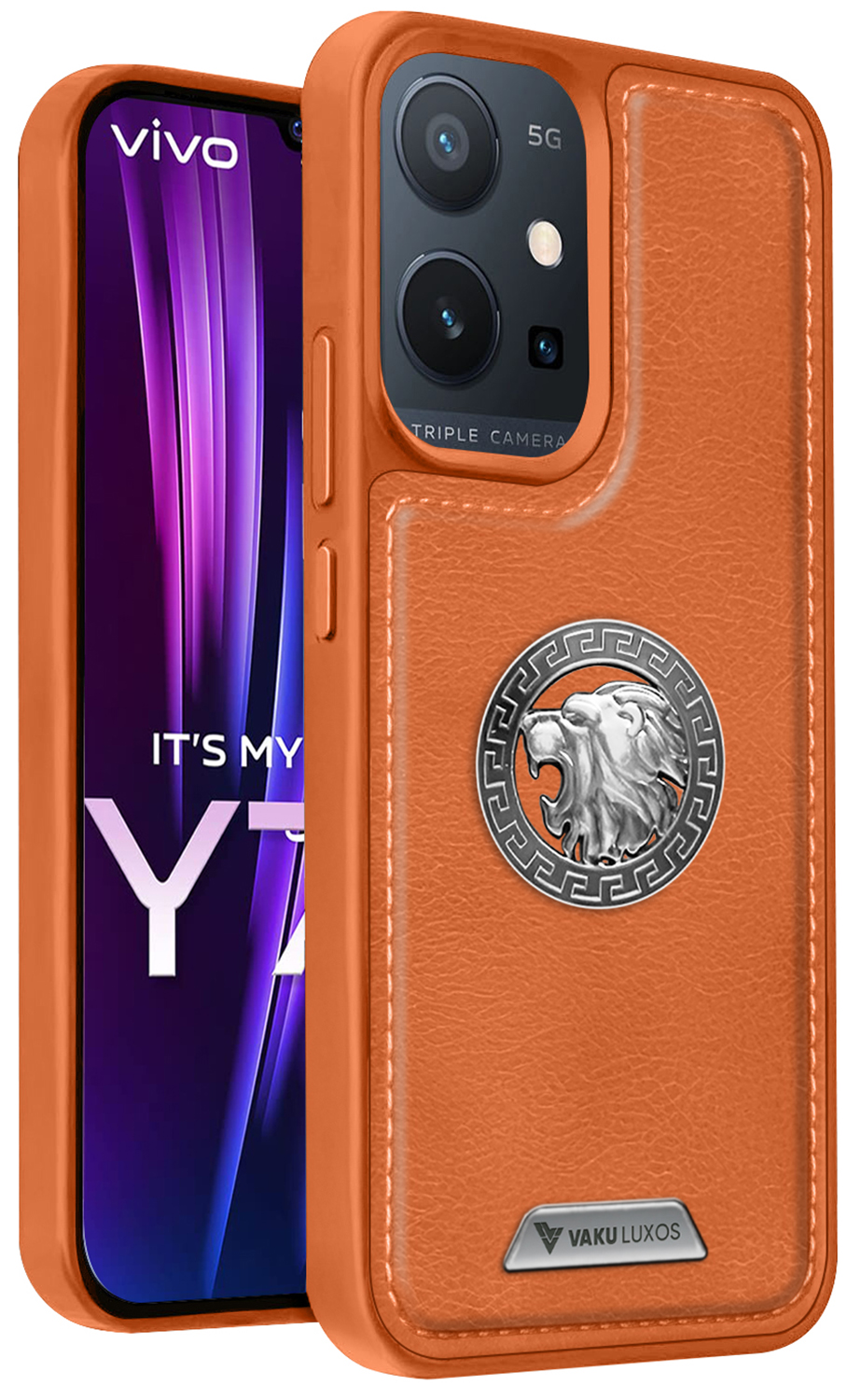 • Adorn your Vivo Y75 5G with the Vaku Regal Shield, featuring a striking Metal Lion Engraved Leather finish. It's not just a cover; it's a statement!