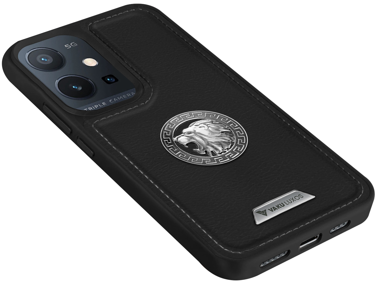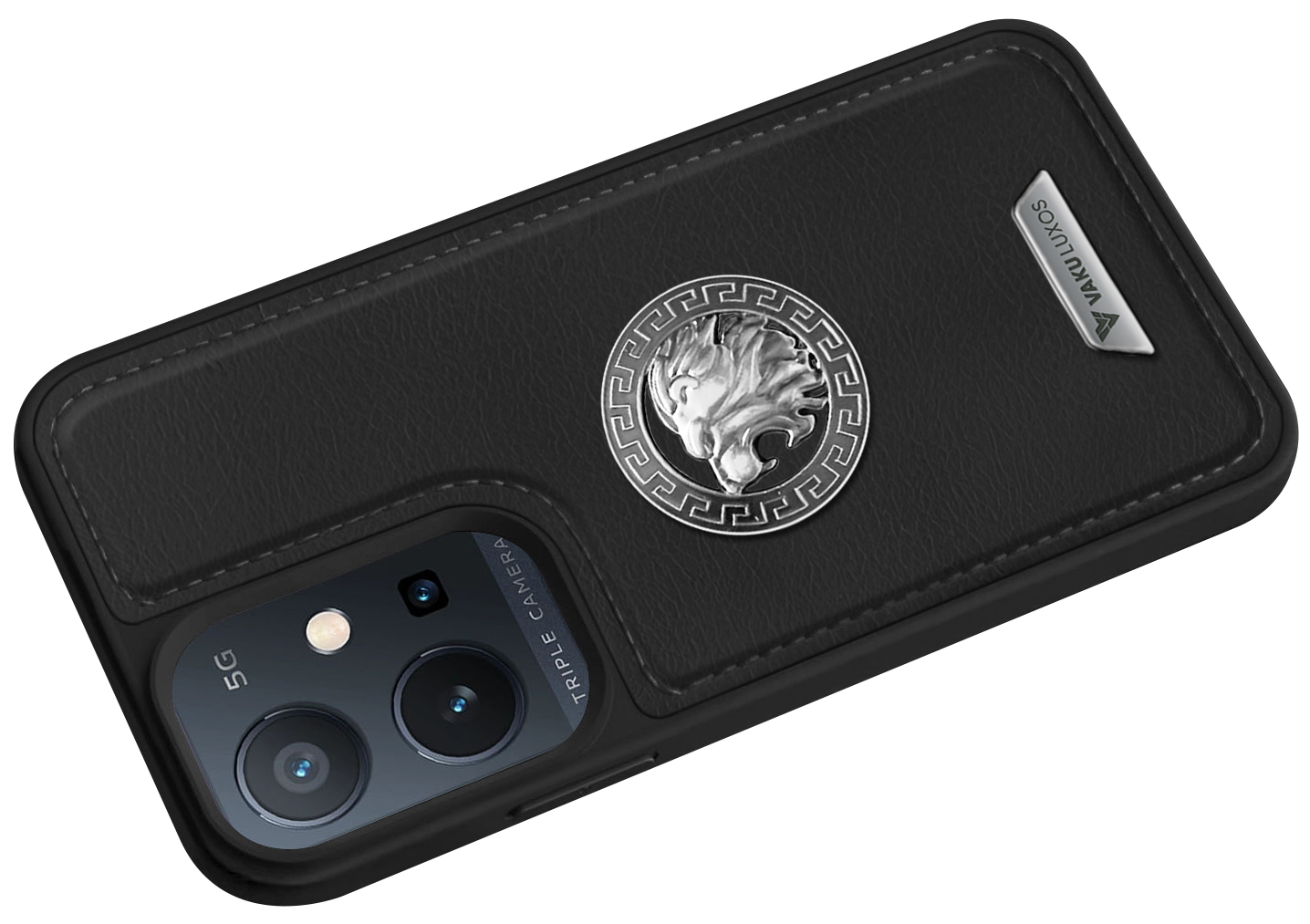 Vaku ® Vivo Y75 5G Regal Shield Metal Lion Engraved Leather Protective Back CoverVaku ® Vivo Y75 5G Regal Shield Metal Lion Engraved Leather Protective Back CoverVaku ® Vivo Y75 5G Regal Shield Metal Lion Engraved Leather Protective Back Cover