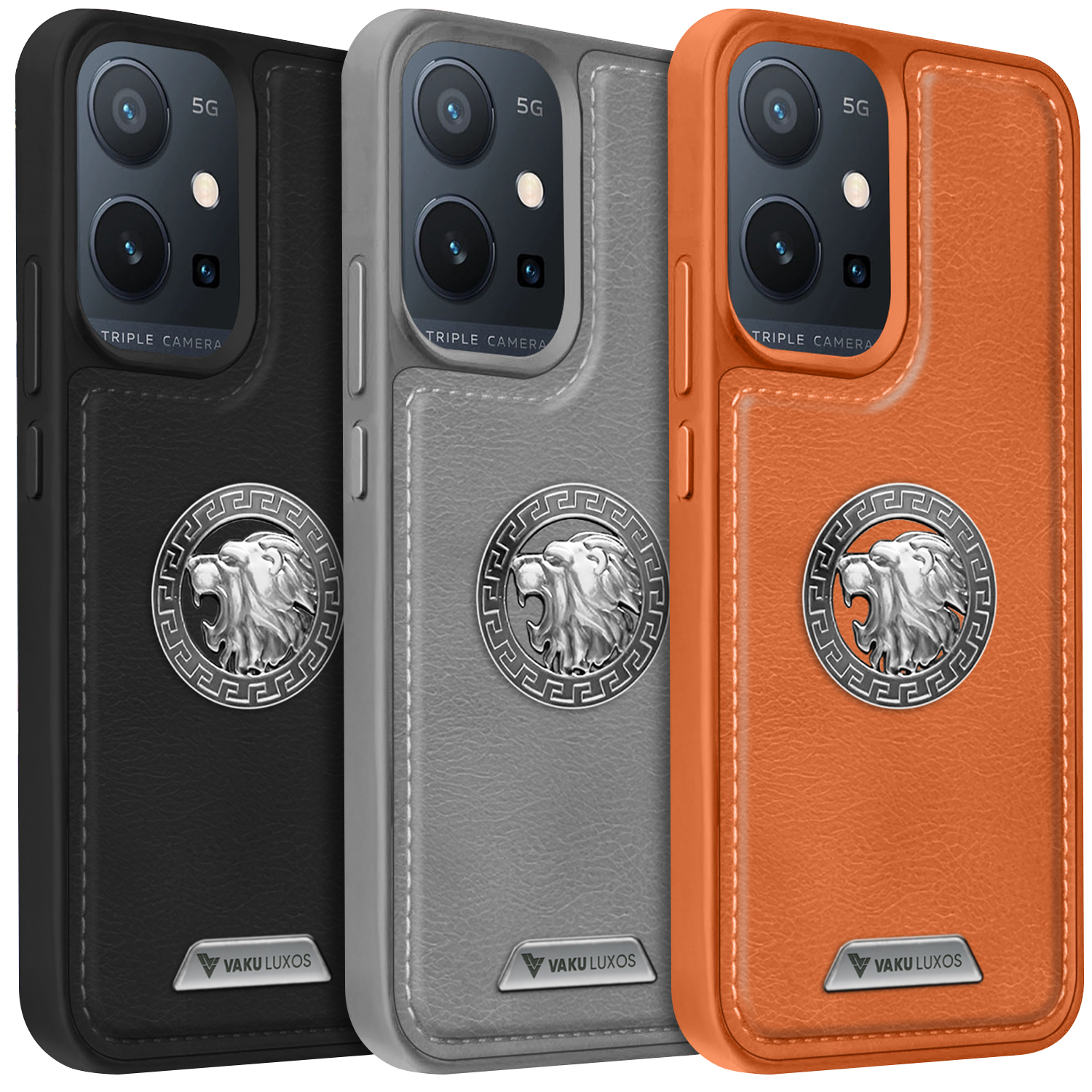 Vaku ® Vivo Y75 5G Regal Shield Metal Lion Engraved Leather Protective Back Cover